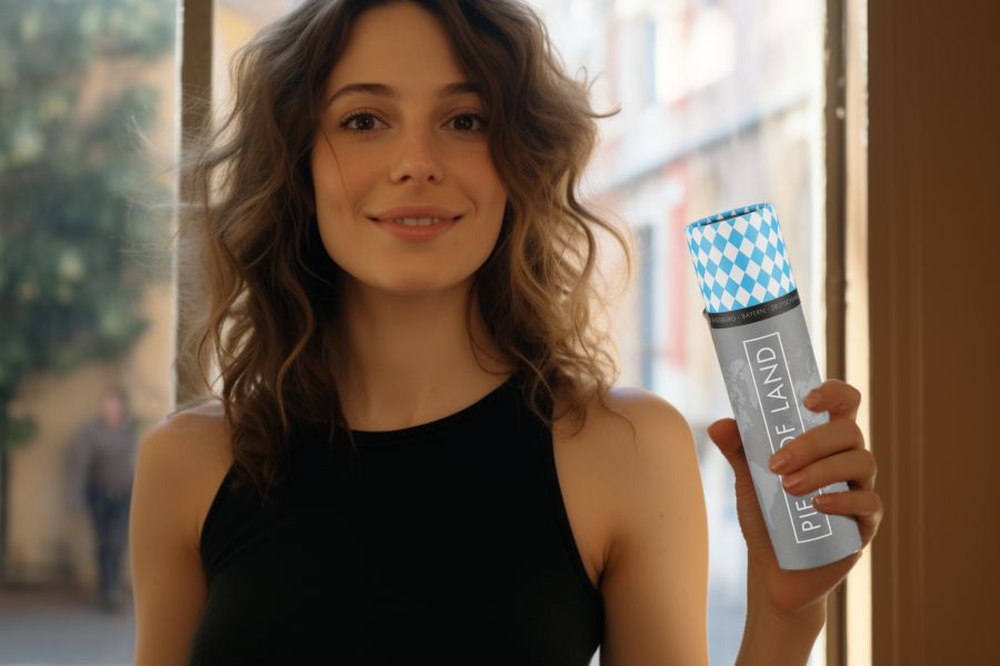 Das Landgeschenk wird geliefert in einer hochwertiger landesspezifischen Urkundenrolle aus abbaubaren Rohstoffen zum sofortigen Verschenken.