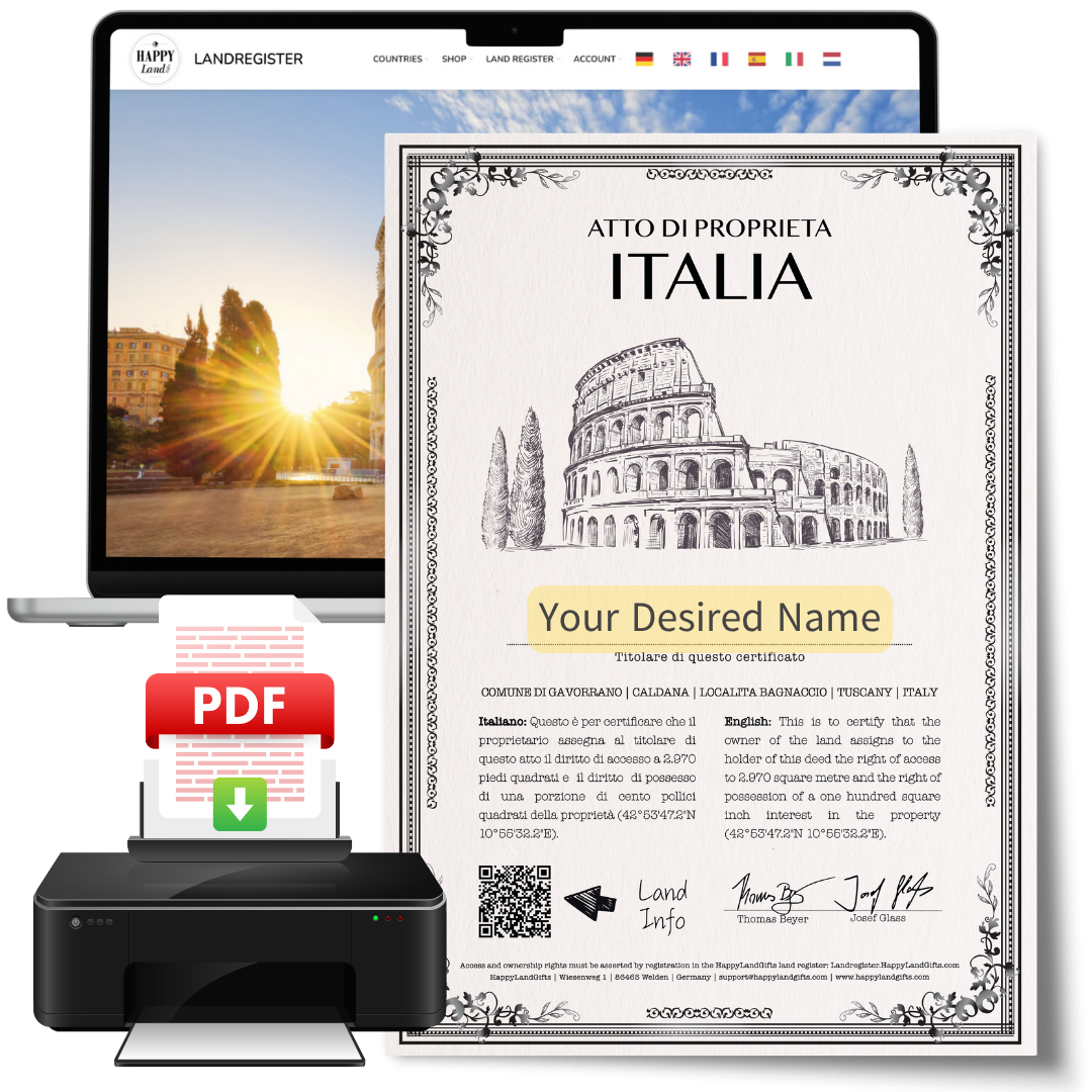 Erinnerungen stilvoll festhalten! Mit einem passenden Bilderrahmen wird die Landurkunde perfekt präsentiert. Ein Geschenk, das jeden Tag Freude bereitet – und lässt Träume jeden Tag aufs Neue wahr werden. 🖼️ 🕯️