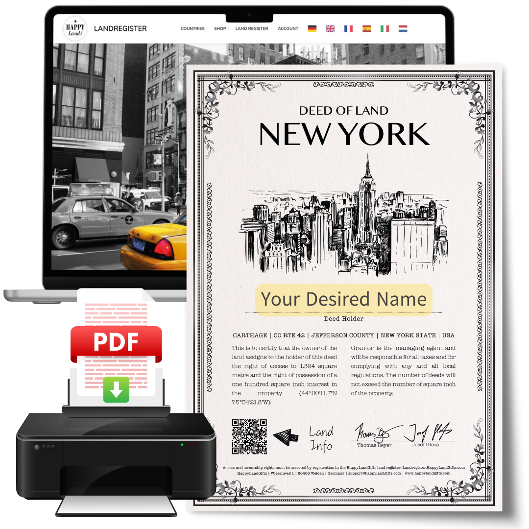 Echtes NEW YORK Grundstück als Geschenk | Digital Version | Last Minute Geschenk