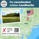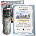 Ownership claim of 100 square inches (for Premium 300 square inch) on the 1,395 m² plot of land In Carthage in New York State, USA, America - including contractually guaranteed right of access. Ideal as a gift for Christmas, Mother's Day, Father's Day, birthdays, weddings, Valentine's Day and anniversaries especially for lovers of American culture.